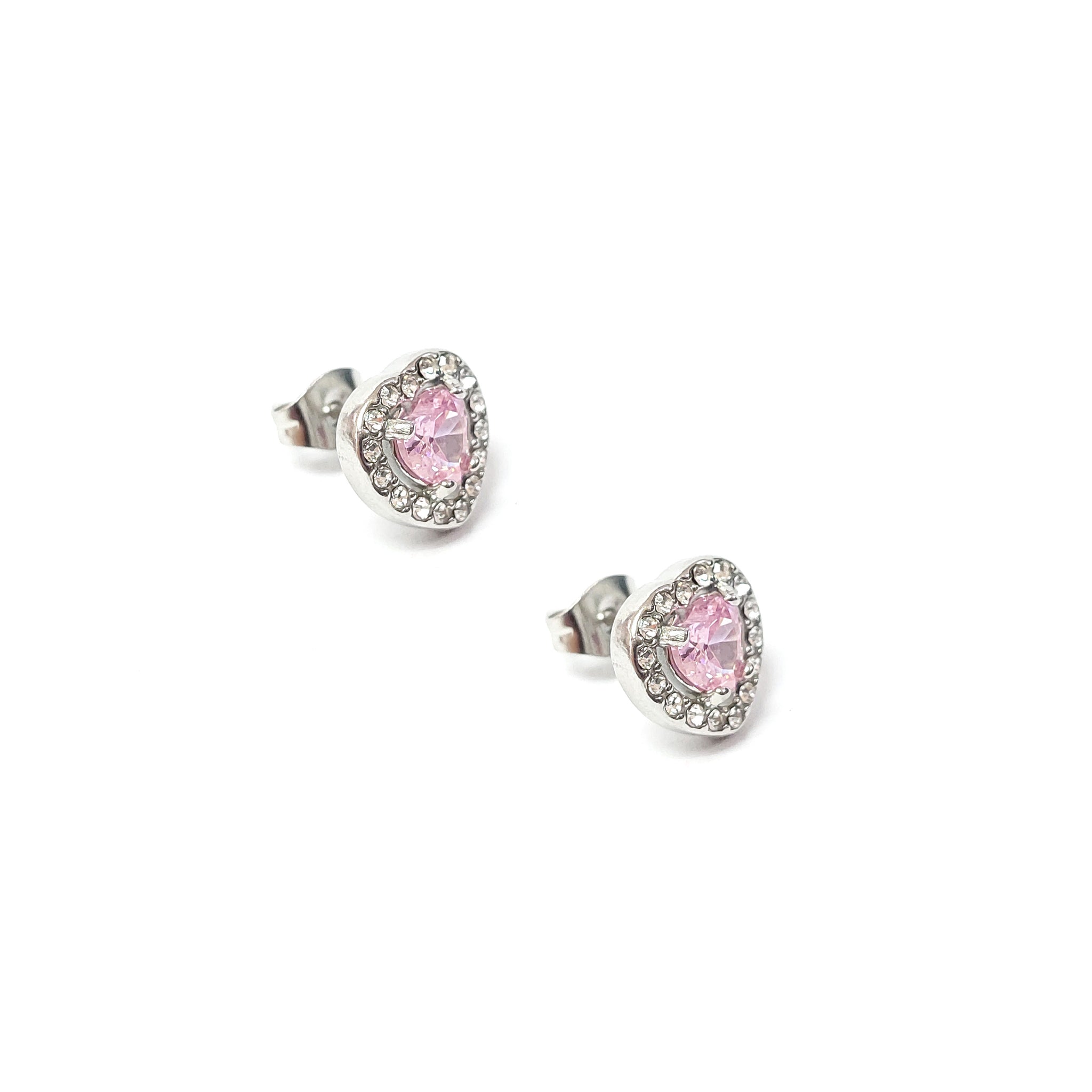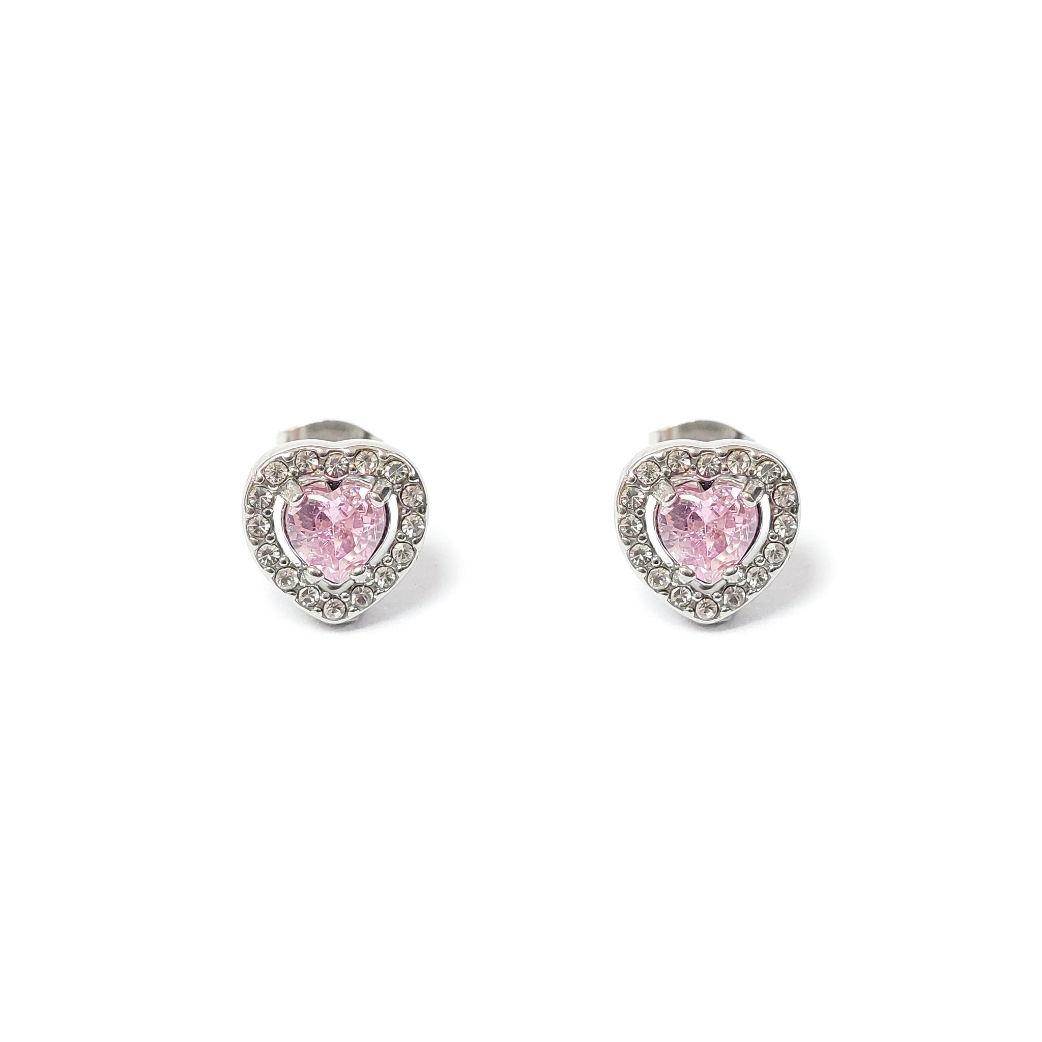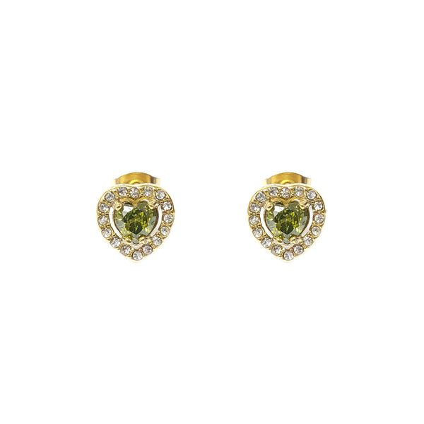 ESE 7932: All IPG Enclosed Cz-Studded Light Emerald Heart Cz Earrings