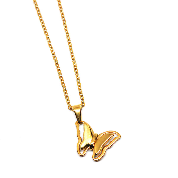 ESN 7140: Gold-Plated Happy Butterfly Necklace w/ 19" IPG Med Link Chain