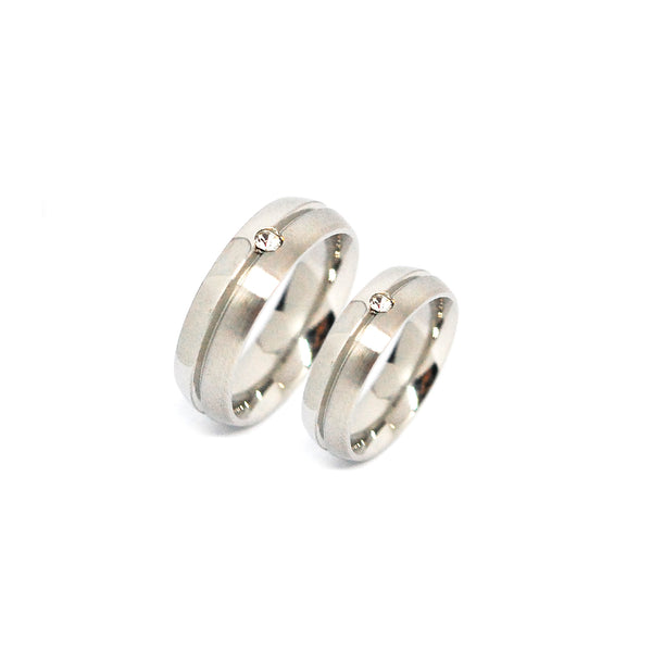 ESR 5890: Cindy 6mm Half-Matte Half Glossy Comfort Fit Ring w/ Swirl & 1 Cz Ctr