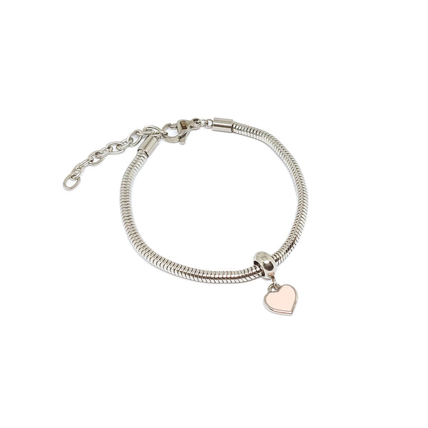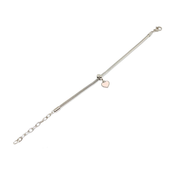 ESBL 7937: Adjustable Steel Bracelet w/ Pink Heart Charm