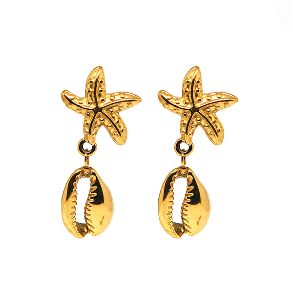 ESE 7375: Gold-Plated Starfish & Shell Studs Combo