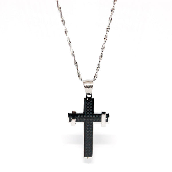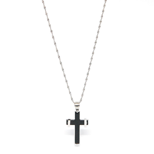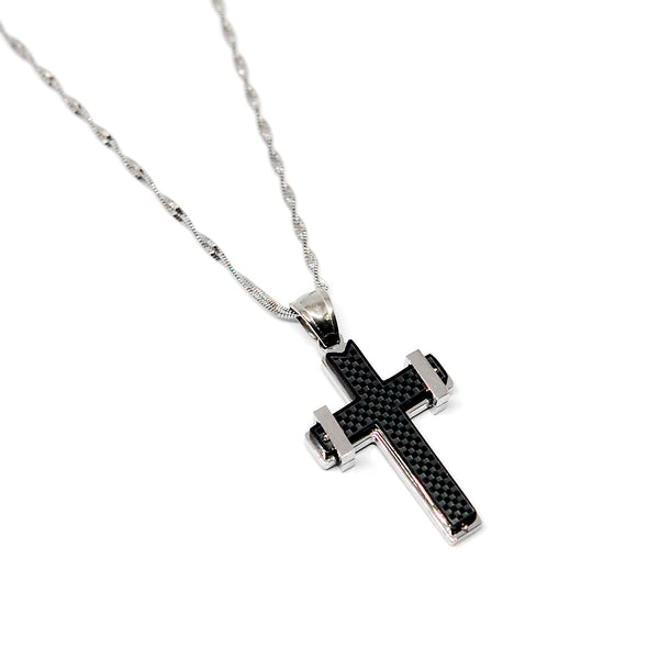 ESN 7315: Black Pixeled Cross Necklace w/ 19.5" Wavy Chain