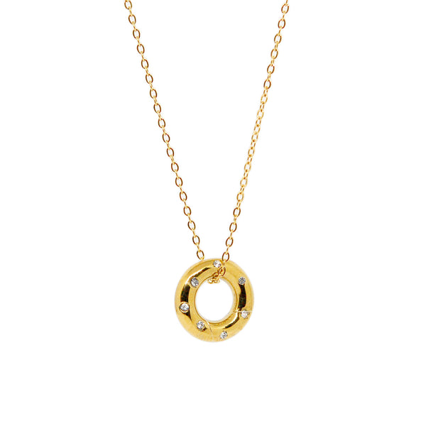 Materials : 316L surgical stainless steelColor: Gold PlatedStone: Cubic ZirconiaChain Length: 17.5 inches + 2 inches extenderHypoallergenicSafe for baby and acidic peopleNon-tarnish, non-rustFor everywhere, everyday use