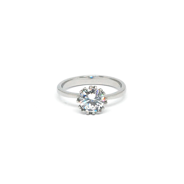ESR 6517: Cheska S/S 7mm Raised Solitaire w/ Paved Sides