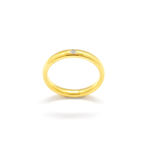ESR 7862: Goldie IPG Glossy 4mm Flat CF Ring w/ 1 Cz Ctr